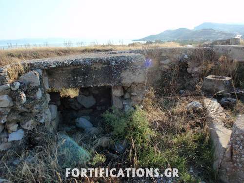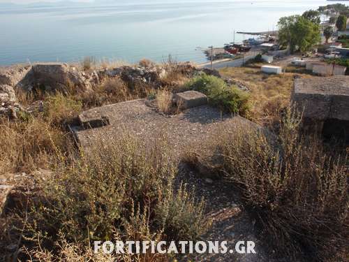 Υπάρχουν 3 θέσεις σε τριγωνική διάταξη στην κορυφή του λόφου και ένα υπόγειο καταφύγιο.