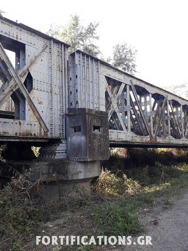 Πάνω στις βάσεις της γέφυρας υπάρχουν επίσης τσιμεντένια πολυβολεία δεμένα πάνω στον μεταλλικό σκελετό της γέφυρας.